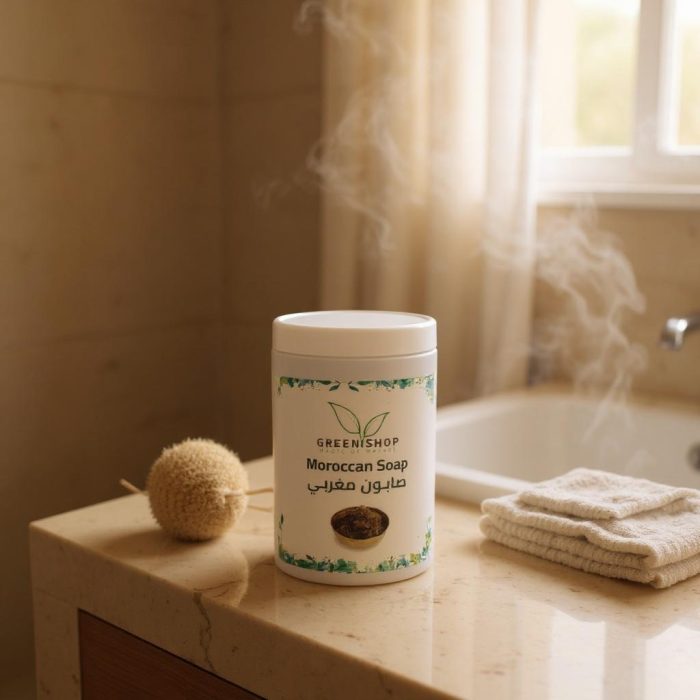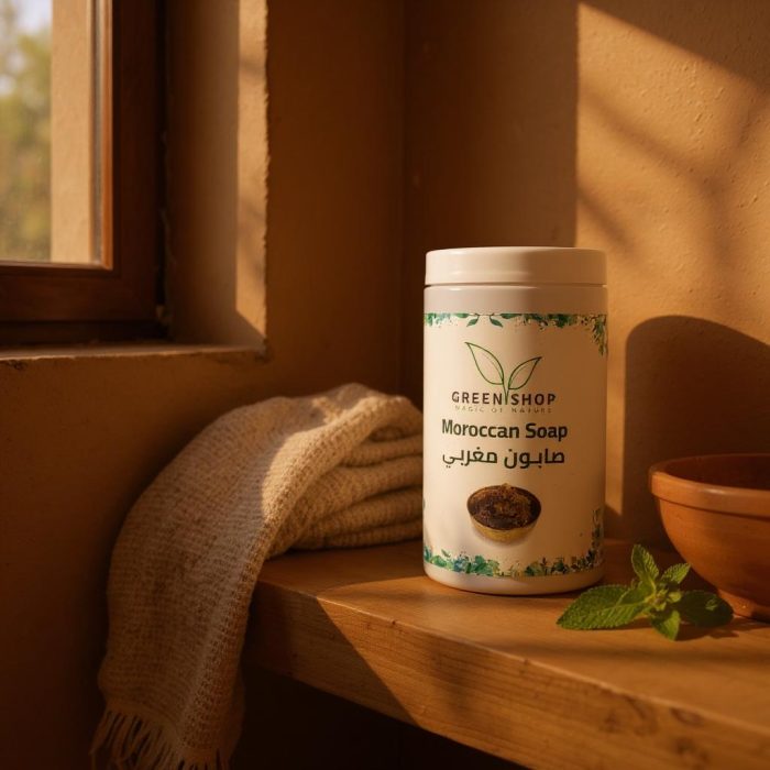 يعمل هذا الصابون المغربي على تنعيم البشرة وإزالة الشوائب بفضل تركيبته الفريدة التي تحتوي على زيوت الأرجان، الصندل، والزيتون.
